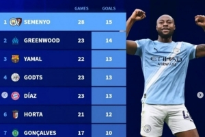 体育资讯3月6日讯 德转盘点了本赛季欧洲前十联赛边锋球员进球榜,其中塞梅尼奥居首,具体如下: