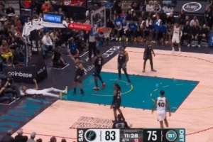 GIF-文班抢到前场板强突造成坎宁安犯规
