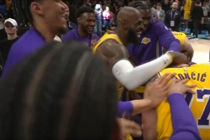 GIF-湖人全队为东契奇庆贺