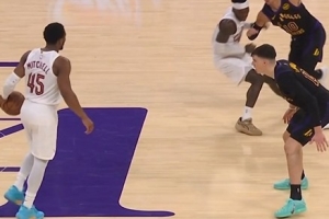 下一篇: 聊啥这么开心!詹姆斯坐在布朗尼旁边说悄悄话 父子俩捂嘴爆笑