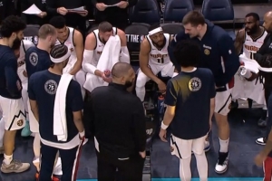 下一篇: 没上场也很有参与感!约翰逊钉板大帽华莱士 掘金替补席吃T