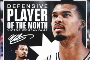 月最佳防守球员:西部文班亚马 东部德里克·怀特